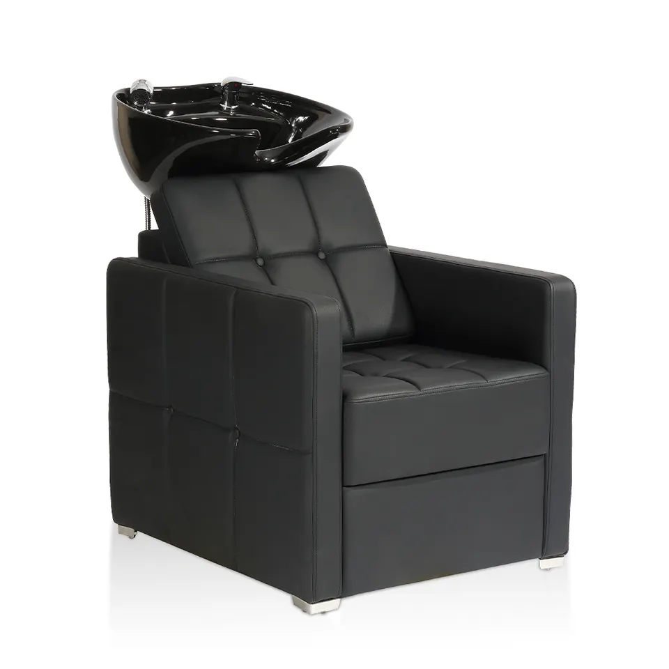 This high-quality shampoo chair is designed with both functionality and aesthetics in mind, making it an ideal addition to any professional hair salon. Featuring a sleek black ceramic basin, this chair provides durability and ease of maintenance. The comfortable seating with high-density foam padding ensures a relaxing experience for clients during shampoo treatments. The stainless steel base adds a modern touch while providing stability and strength.